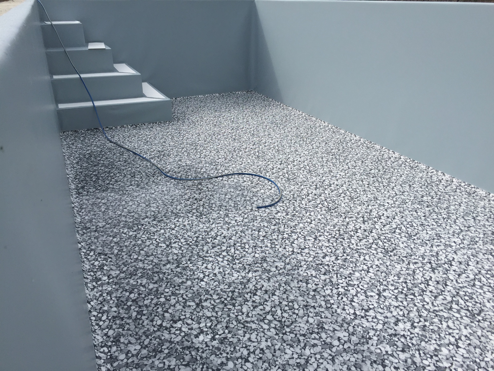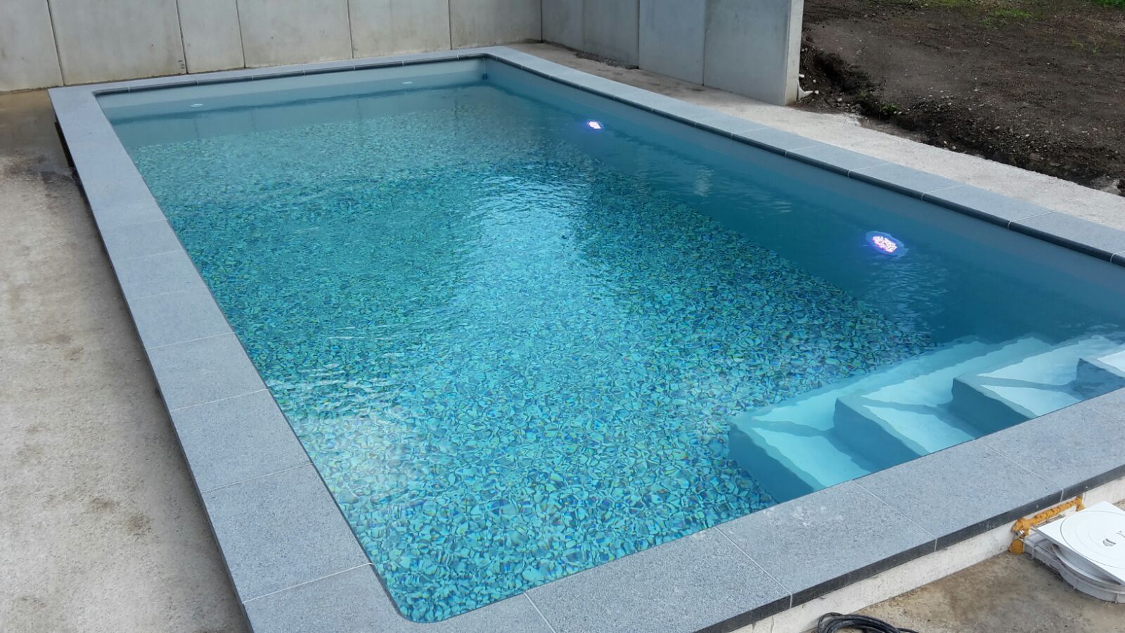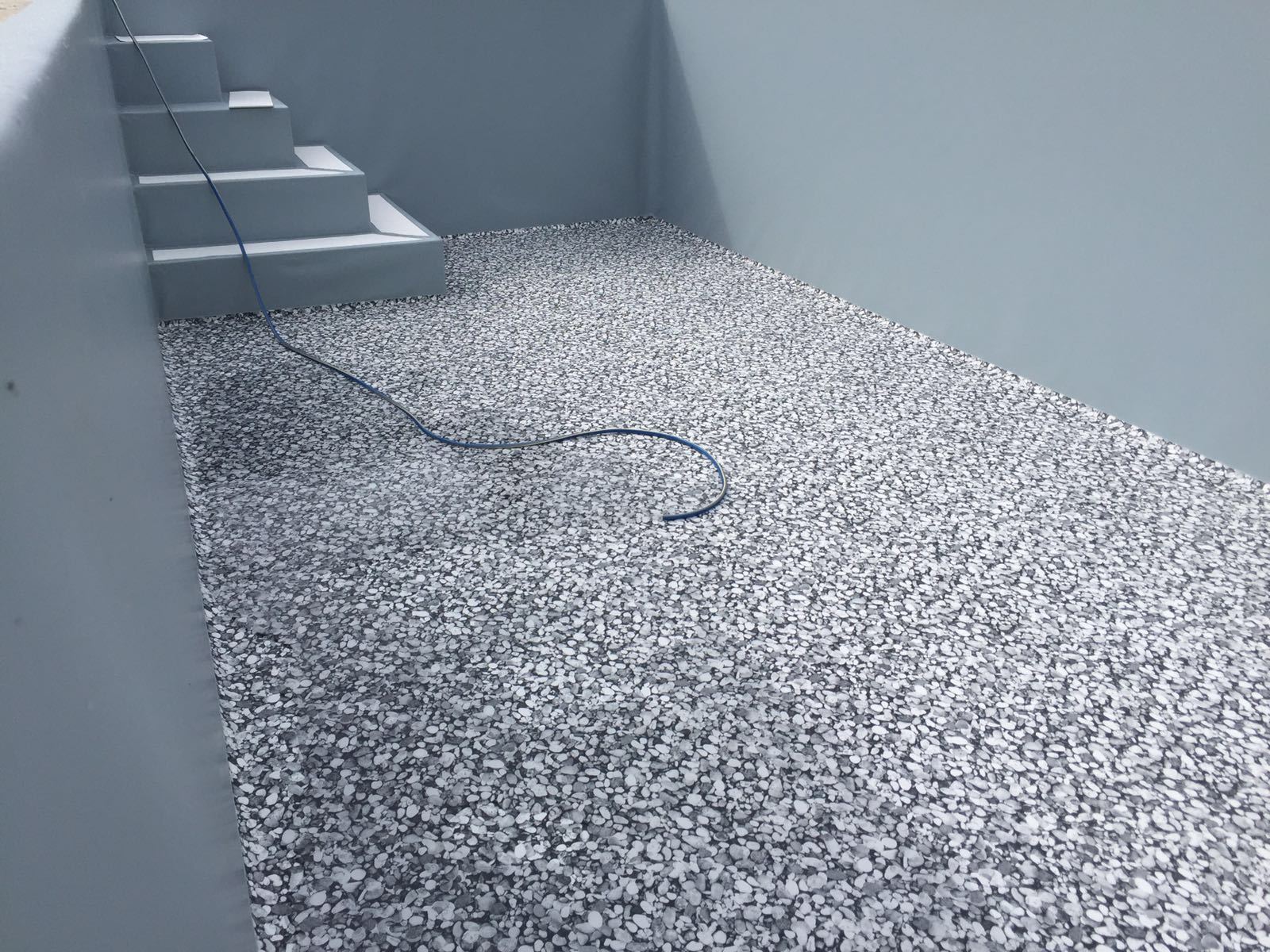 Die abschließenden Arbeiten lagen danach wieder in den Händen des Poolbauers. Trotz schlechter Wetteraussichten wurde die komplette Folien innerhalb eines Tages verlegt.