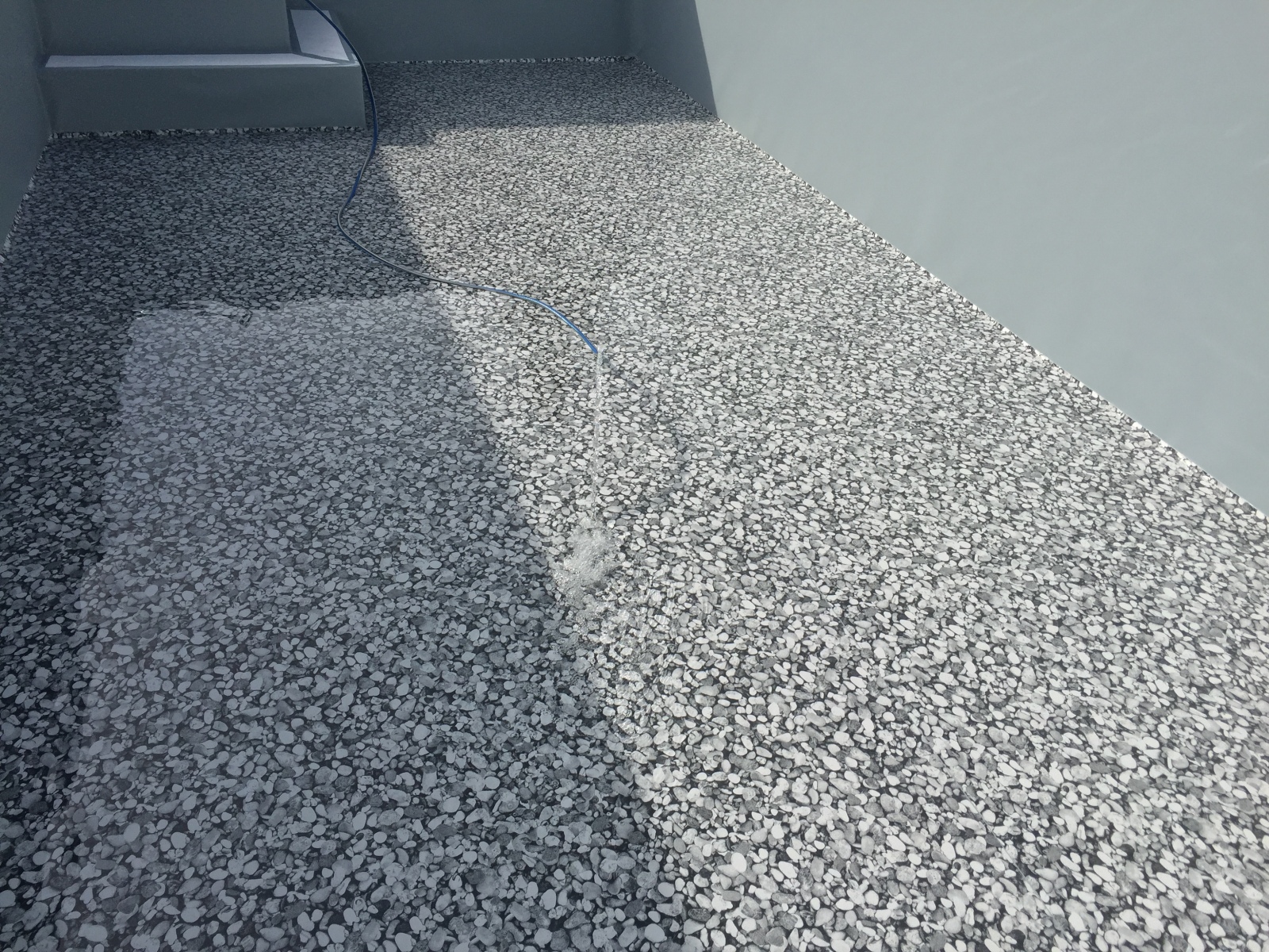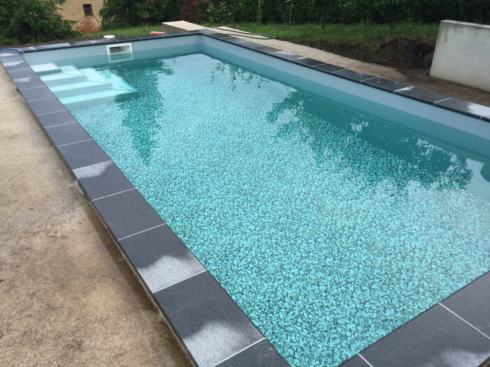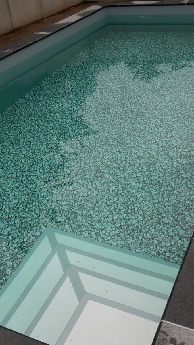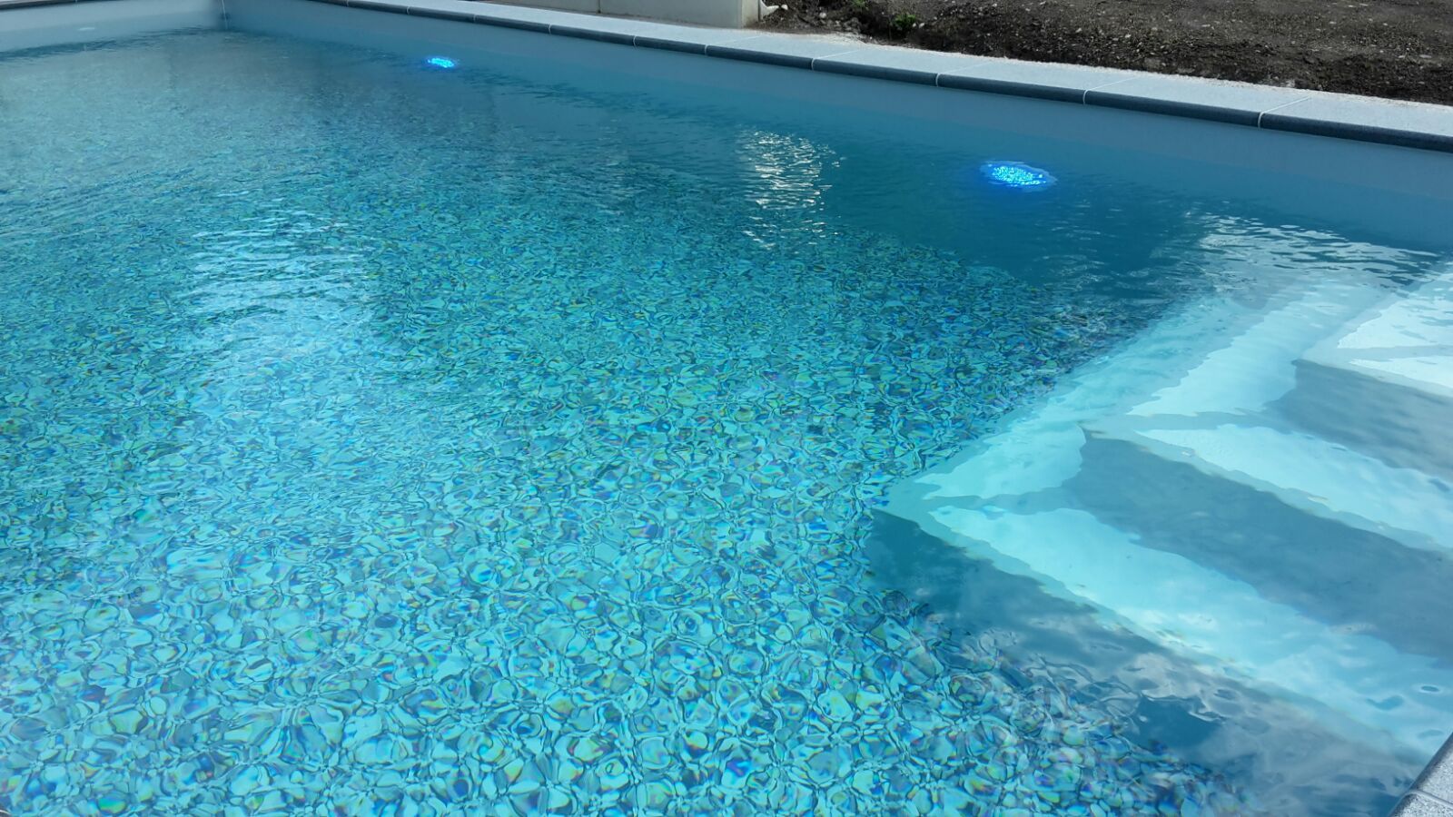 Die abschließenden Arbeiten lagen danach wieder in den Händen des Poolbauers. Trotz schlechter Wetteraussichten wurde die komplette Folien innerhalb eines Tages verlegt.