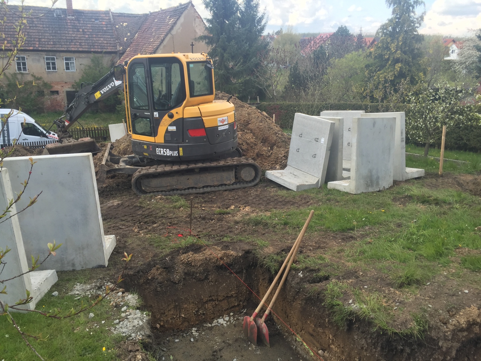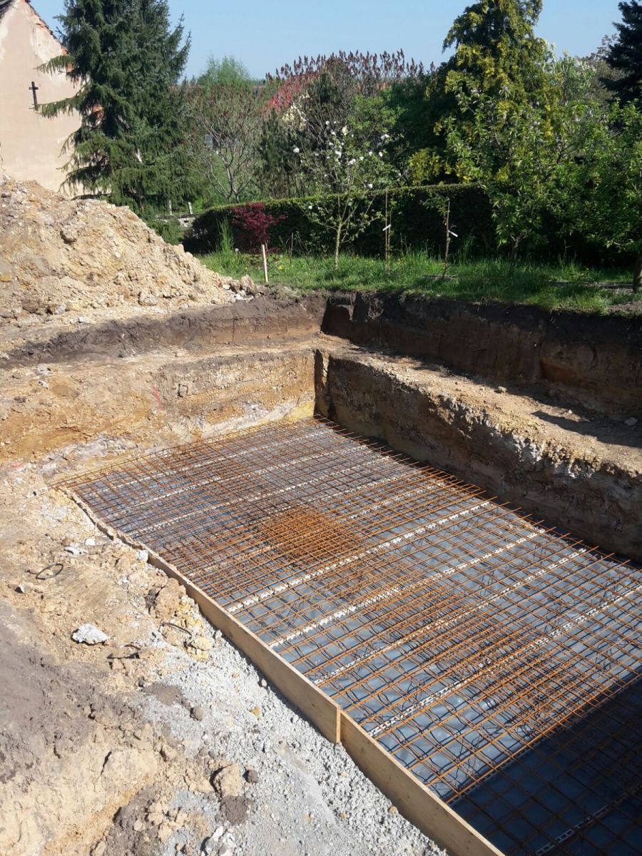 Das Ziel der Woche war, die Bodenplatte fertig zu stellen, sodass sobald es möglich ist, die Styroporsteine gesetzt werden können.
