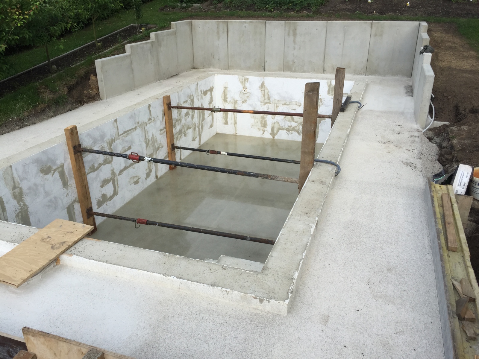 Um die Poolwände gegen den Beton abzusichern, wurden diese entsprechend abgestützt.