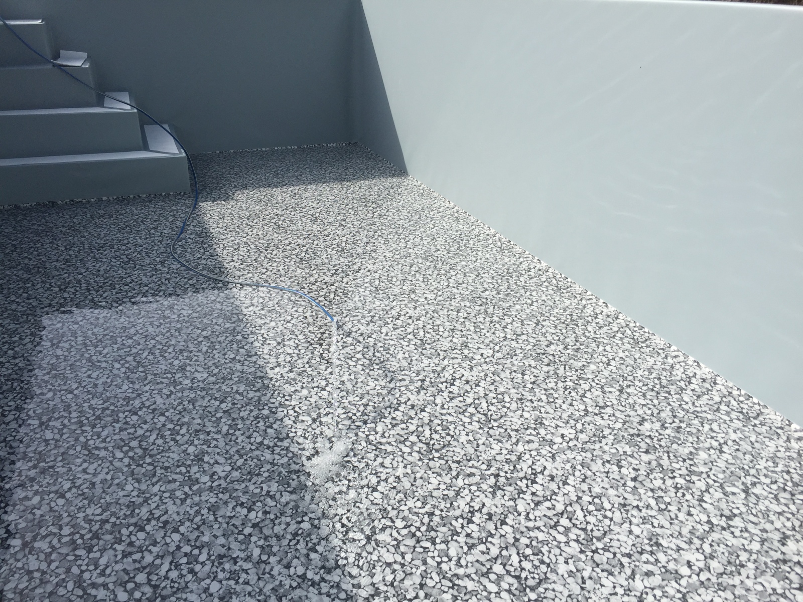 Um das Problem mit dem Wasser zum Abschluss zu bringen, wurde rund um den Pool eine Drainage verlegt und mit etwas Kies abgedeckt.
