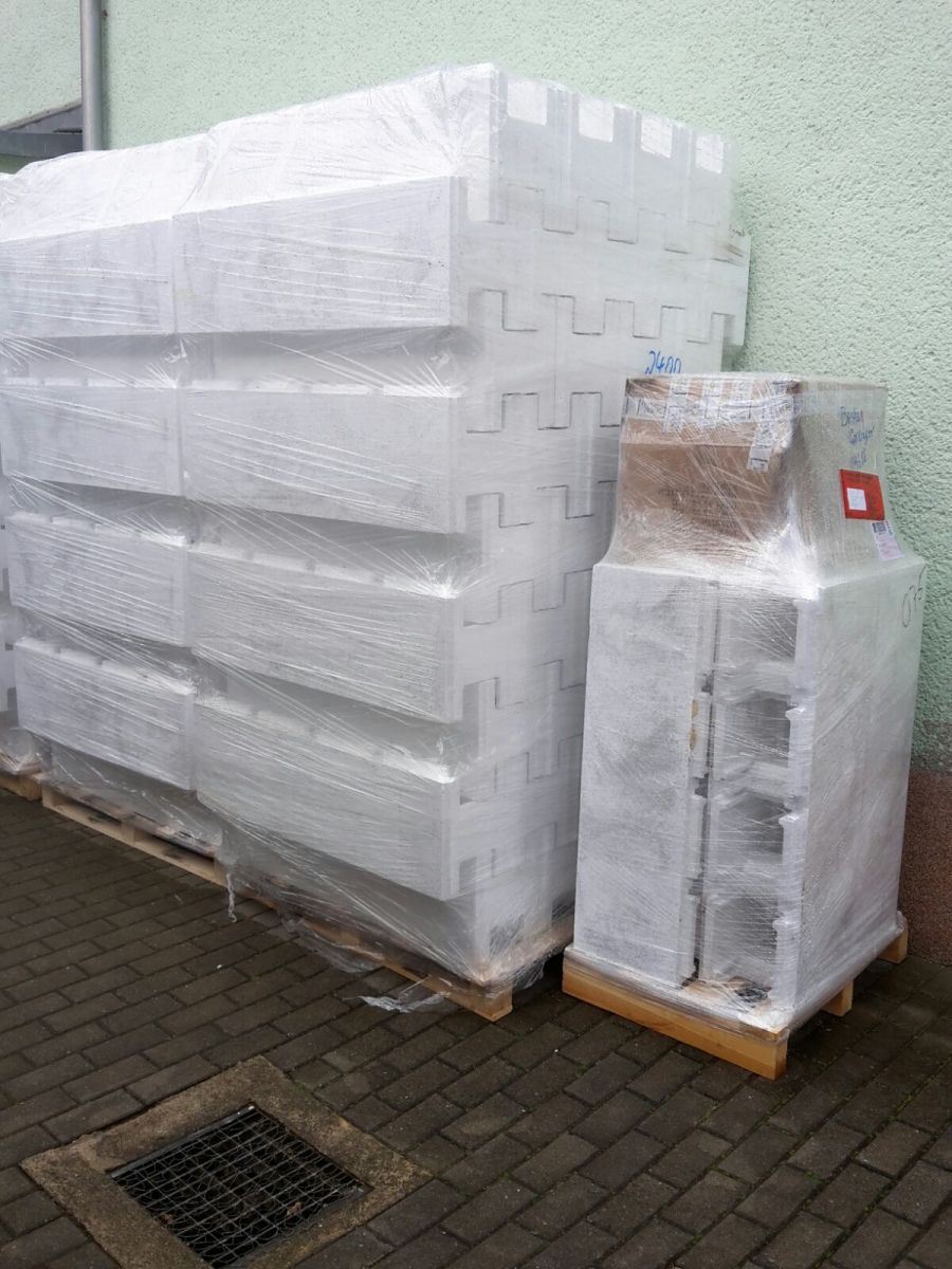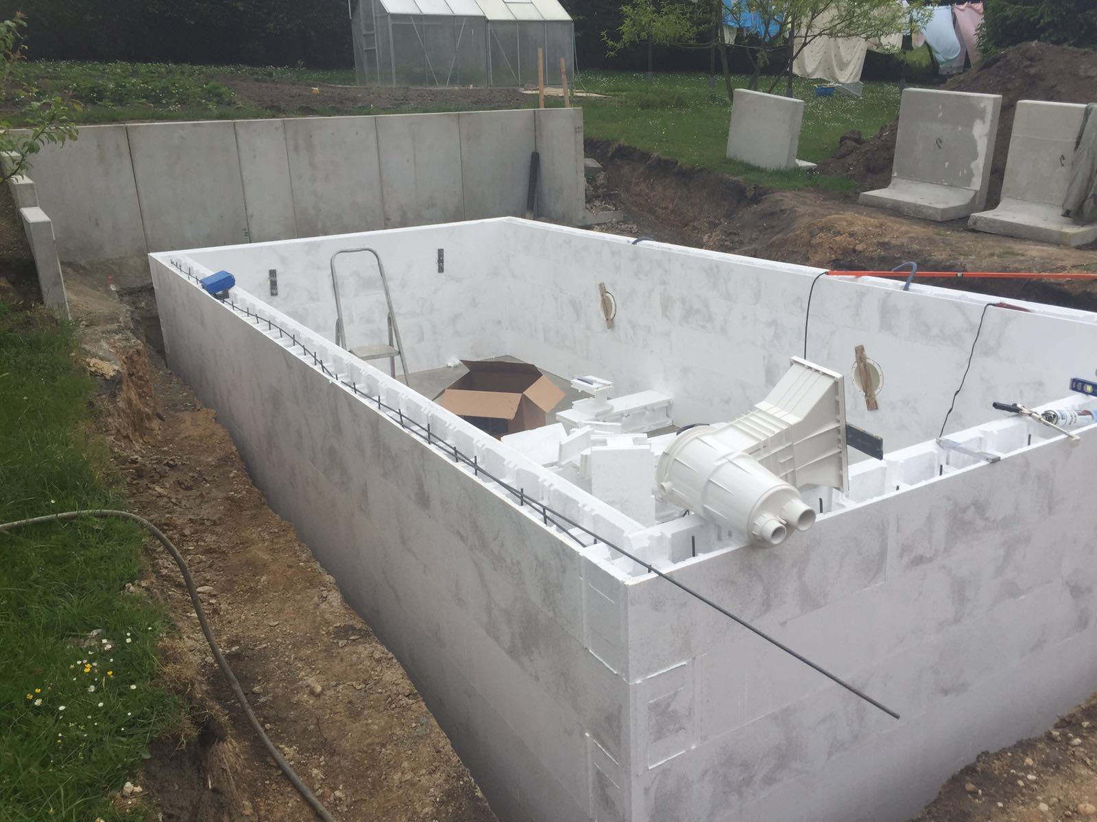 Nach dem die Bodenplatte soweit getrocknet ist, ging es an das setzten der Styroporsteine und den Einbau der einzelnen Einbauteile.
