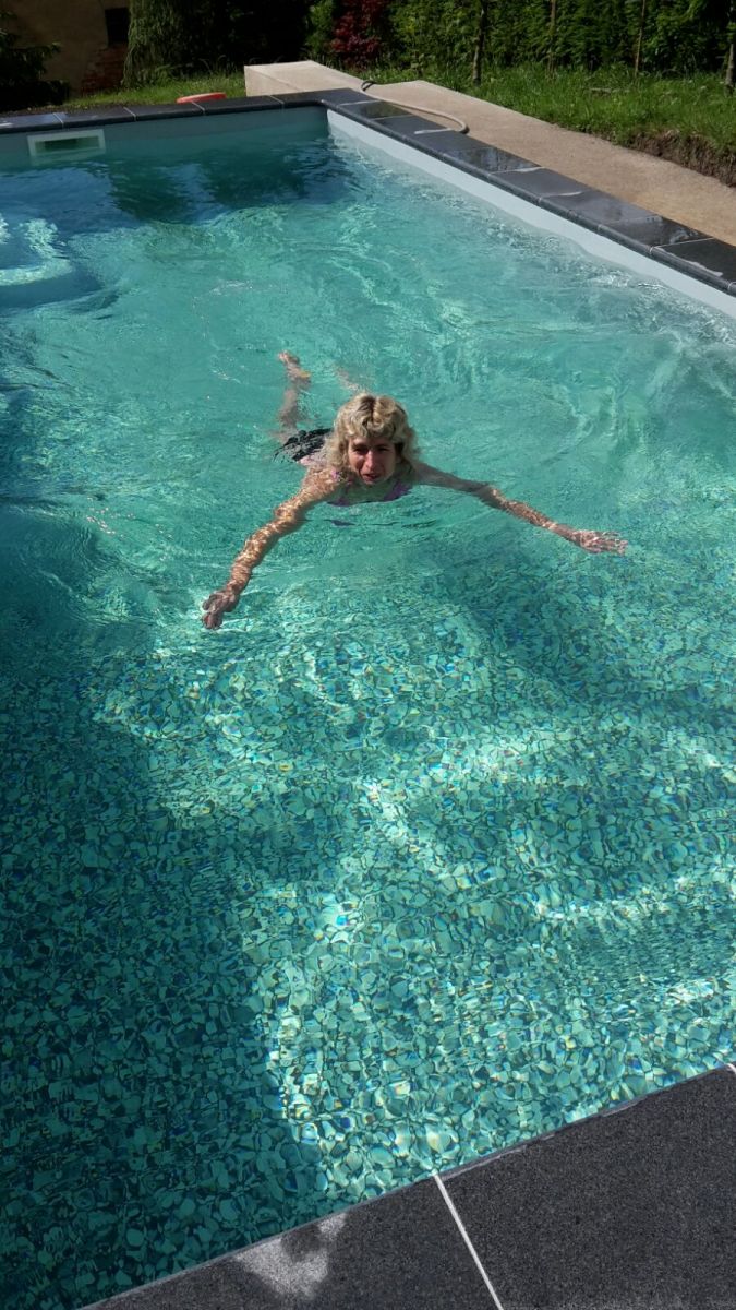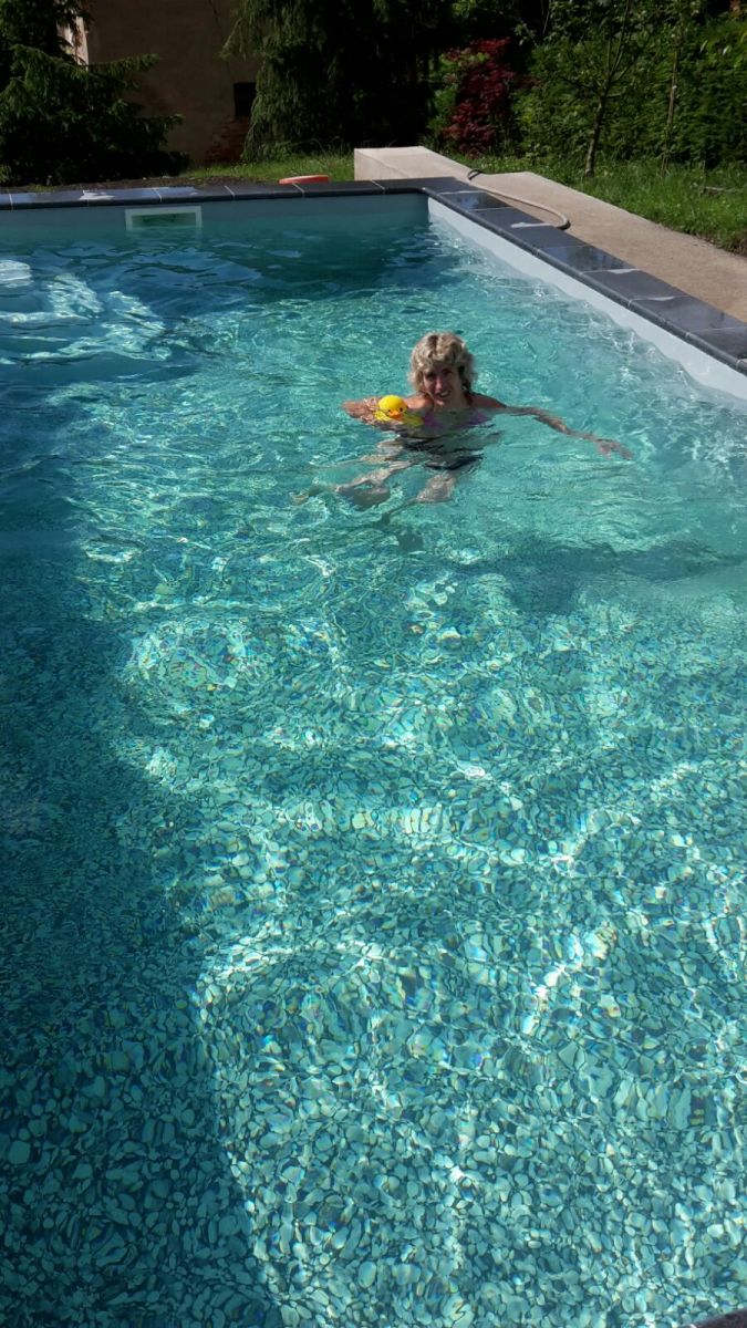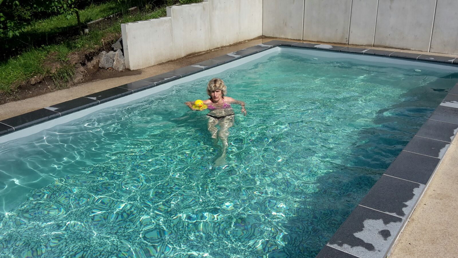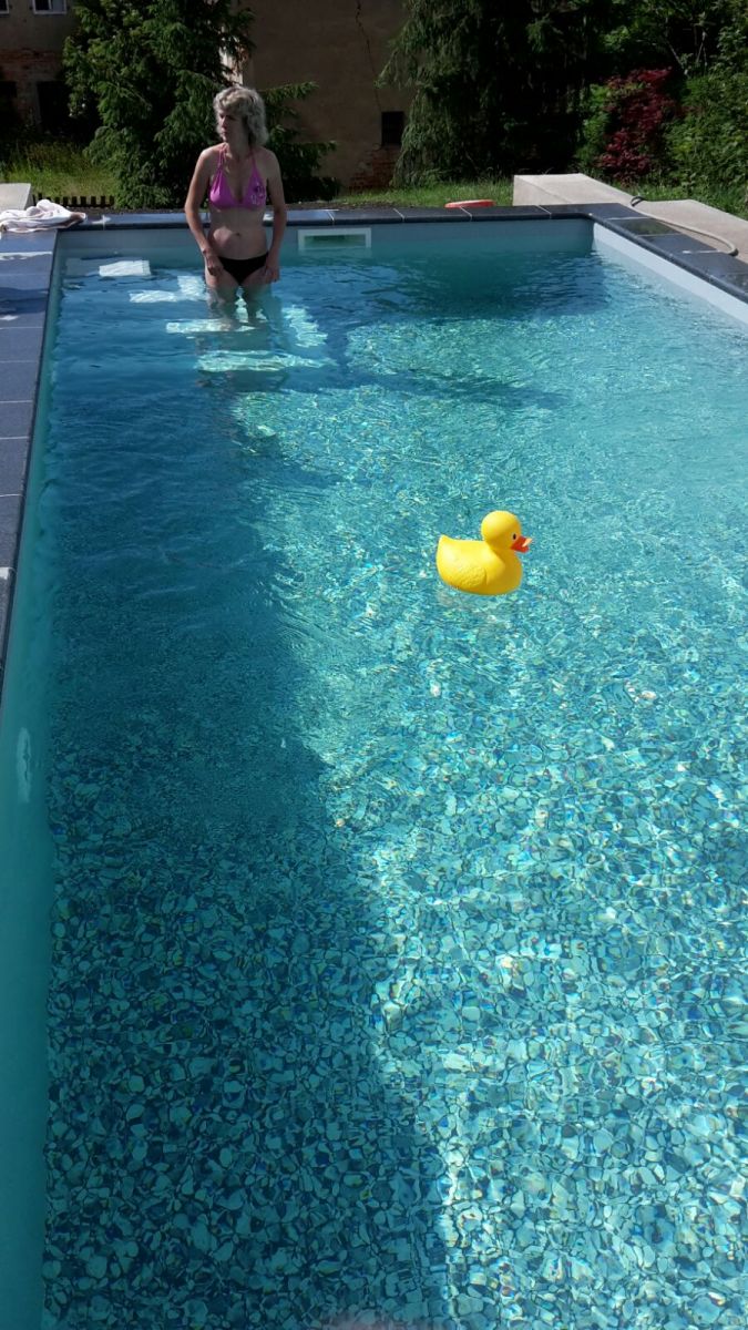 Danach hieß es Wasser marsch. Nach knappen zwei Tagen, über den Hauswasseranschluss, war der Pool komplett gefüllt und der erste Badegast war zufrieden.