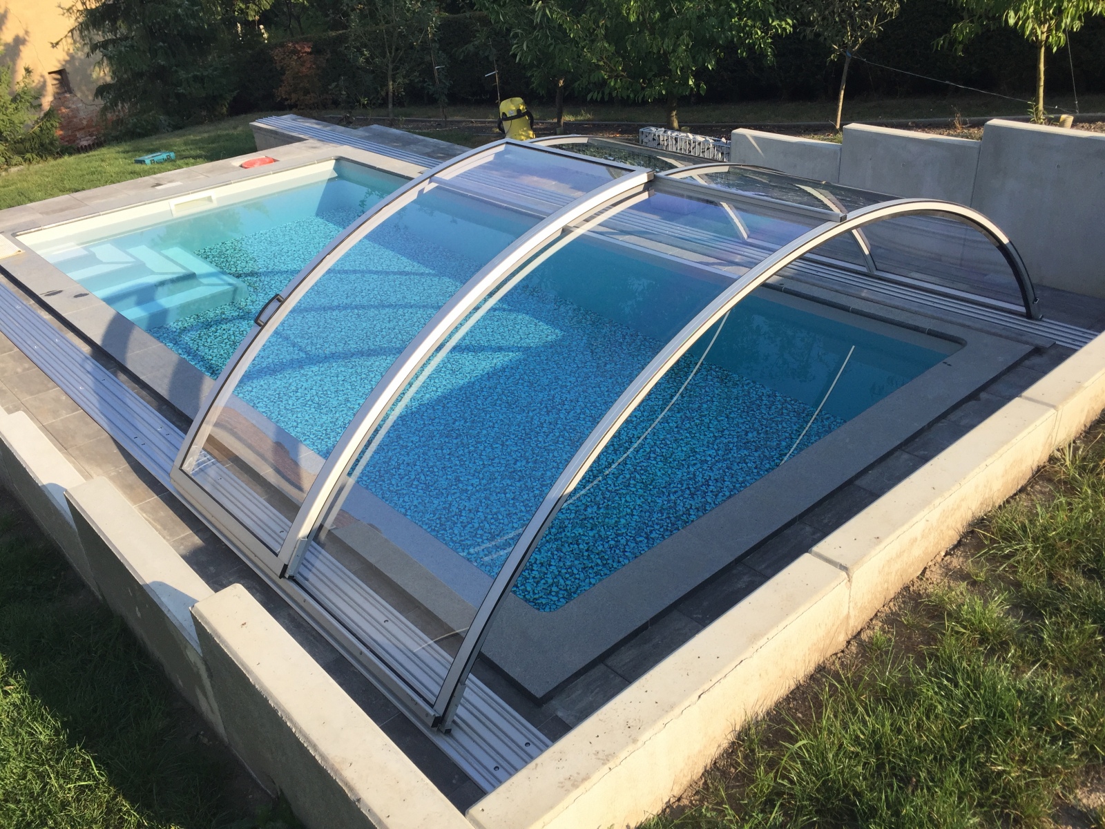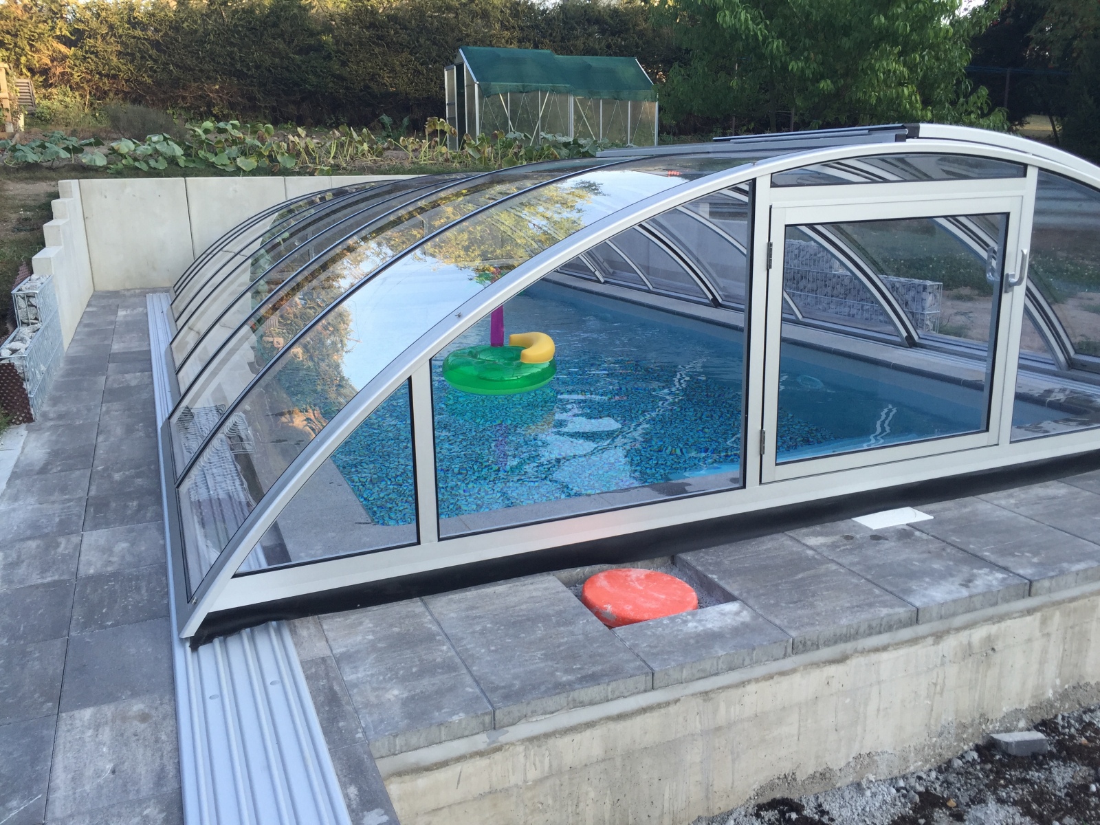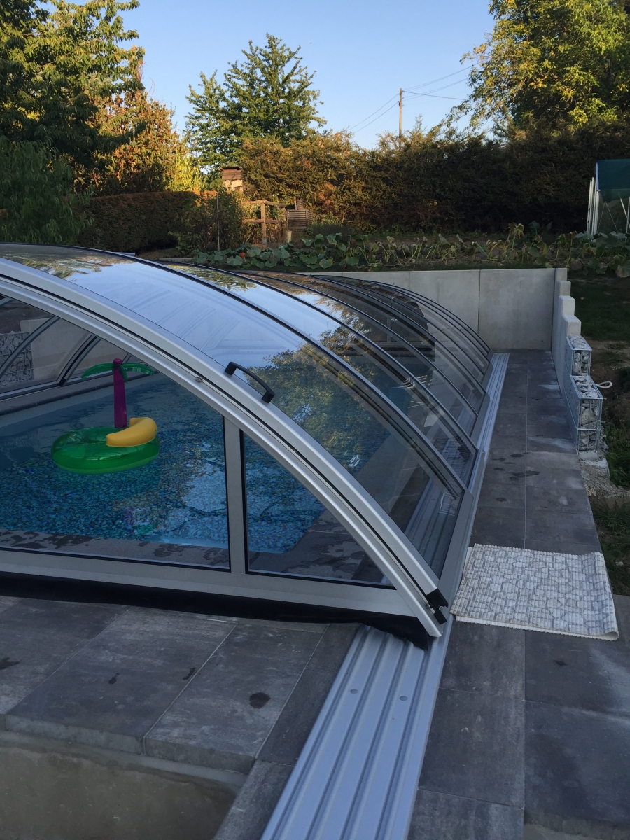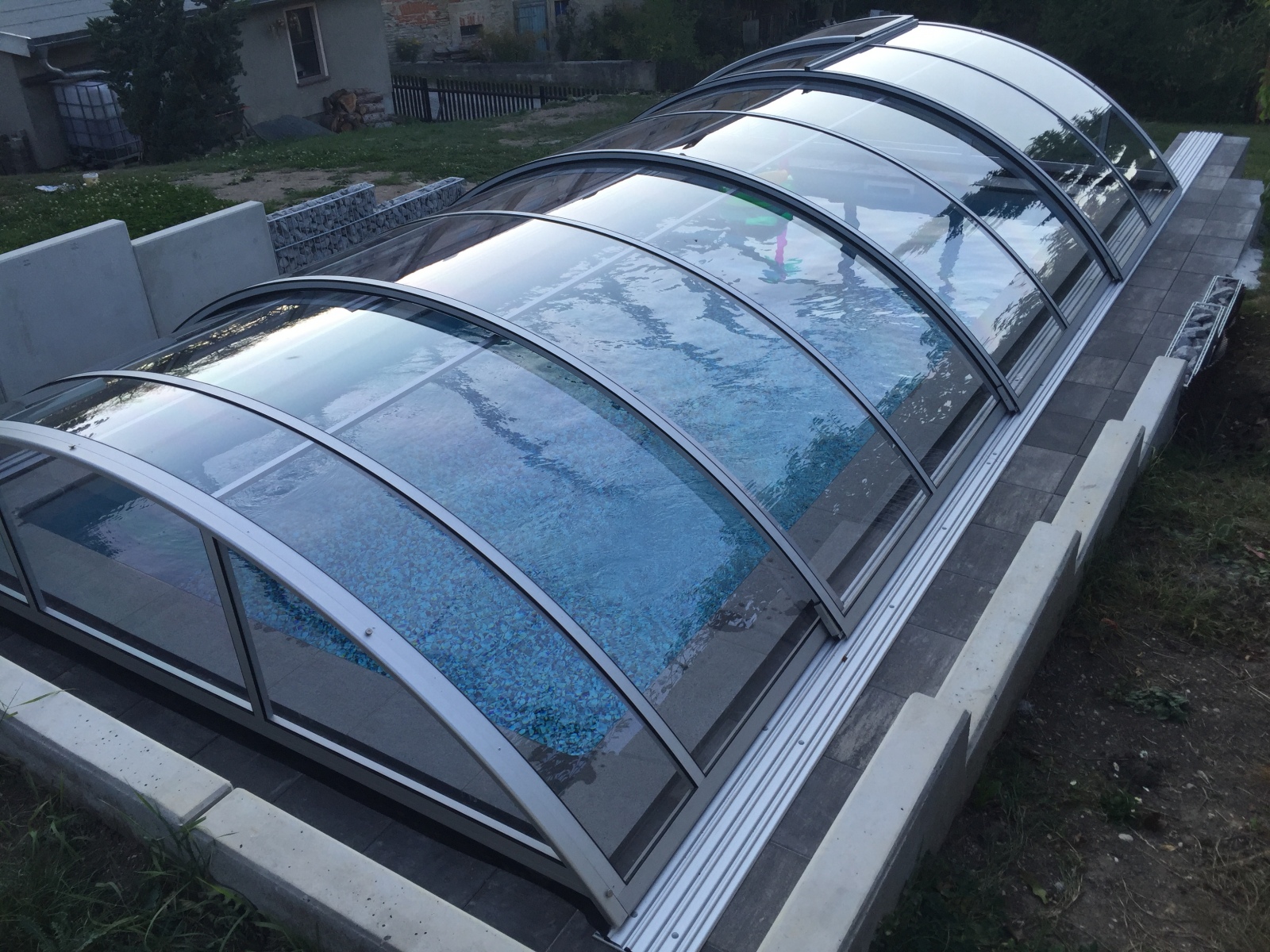 Nachdem die Terrassenplatten verlegt waren hatte ich das Glück, dass die Poolüberdachung kurz danach geliefert und montiert wurde. Das wahr echt passend, weil kurz danach die Temperaturen in der Nacht stark nachgelassen haben. So konnte man noch entspannt bis Ende Septmber / Anfang November baden.